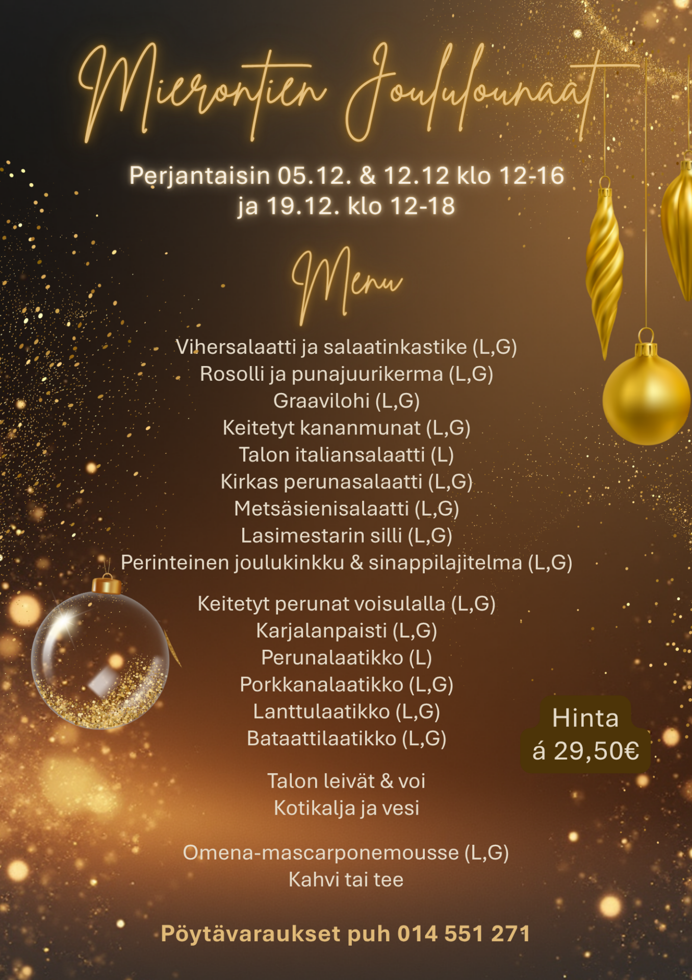 Tervetuloa nauttimaan joulun parhaat maut Mierontien joululounaille!